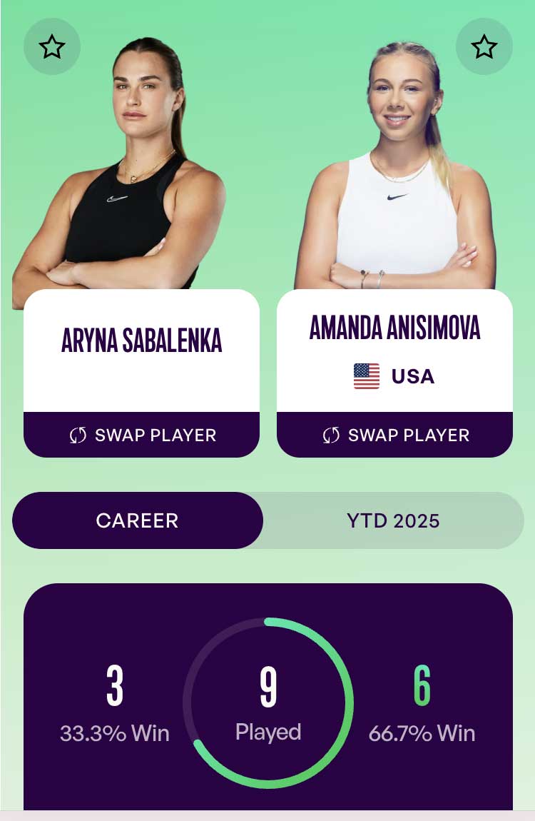 両者の対戦成績は、アニシモワの6勝3敗となっています。