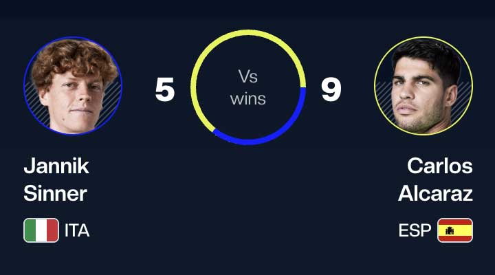 両者の対戦成績は、アルカラスの9勝5敗となっています。